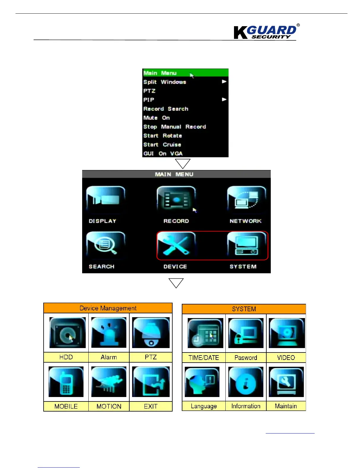KGuard Security SHA-104.V2 - Structure of OSD Display(8 CH)