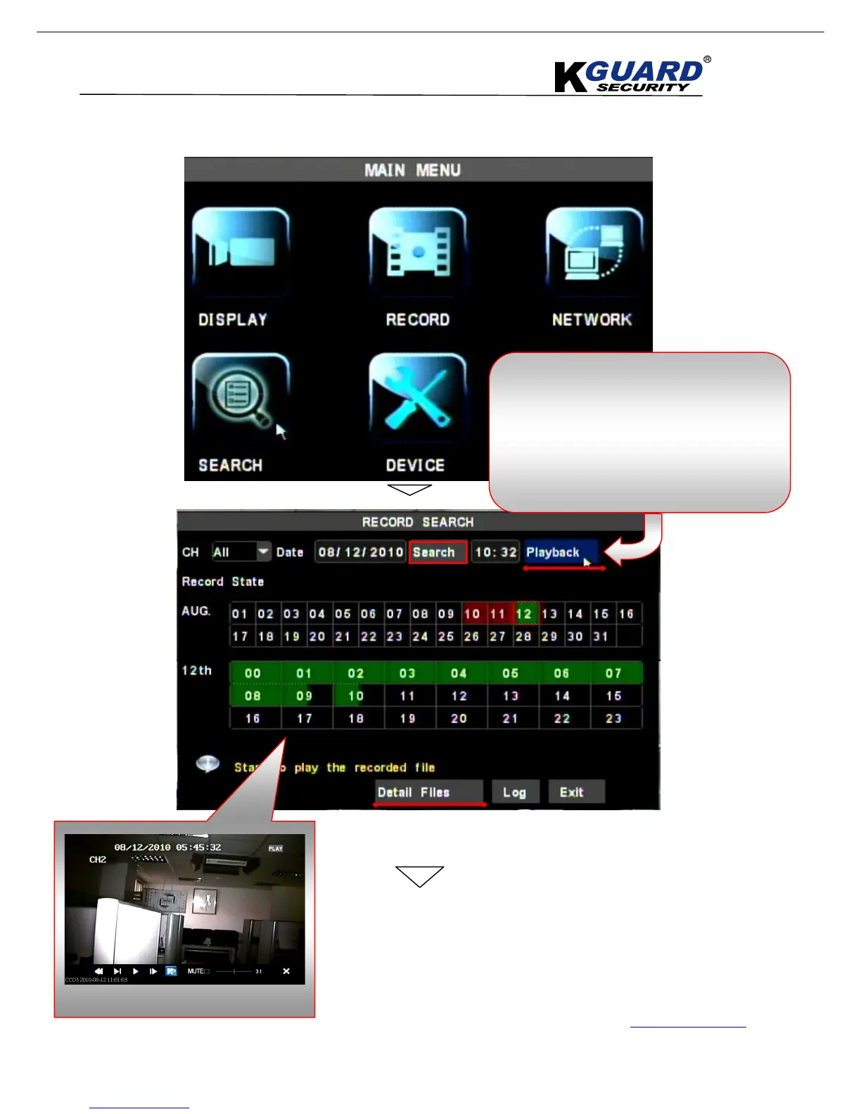 KGuard Security SHA-104.V2 - Main Menu Setup(Search;Playback)