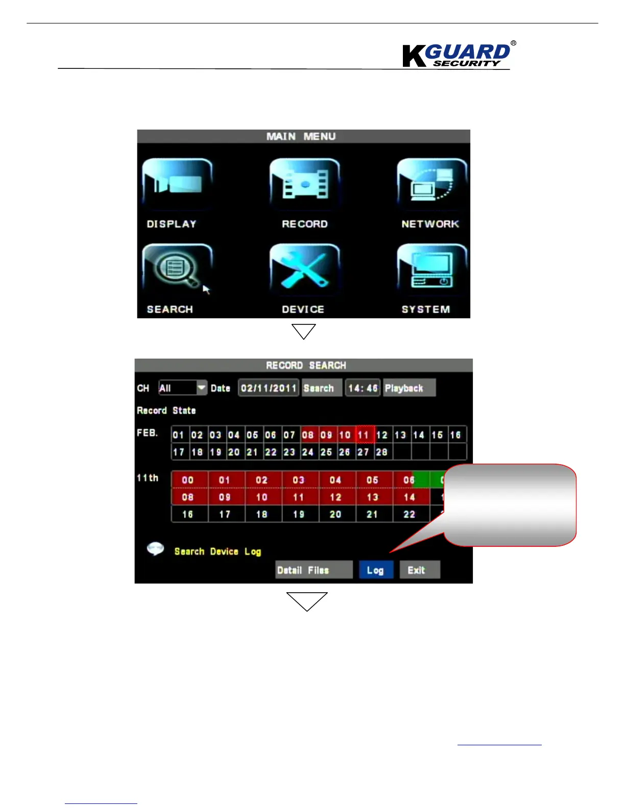 KGuard Security SHA-104.V2 - Main Menu Setup(Search;Log;Export)