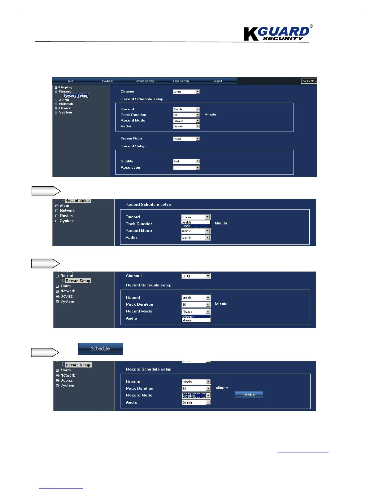 Step 1. ”Enable”“Record”“Record Schedule Setup”