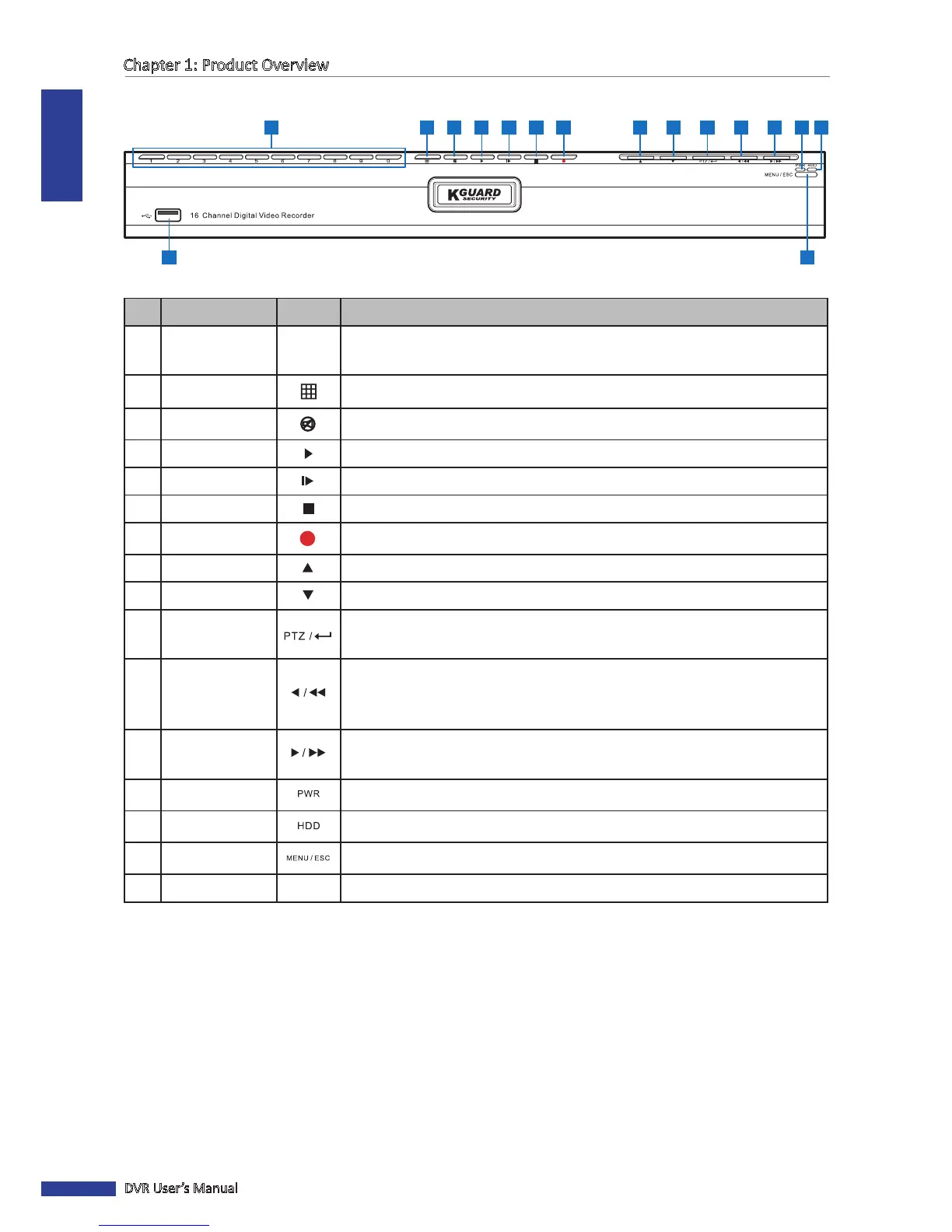 14 HDD Indicator Lights red when the HDD is being accessed.