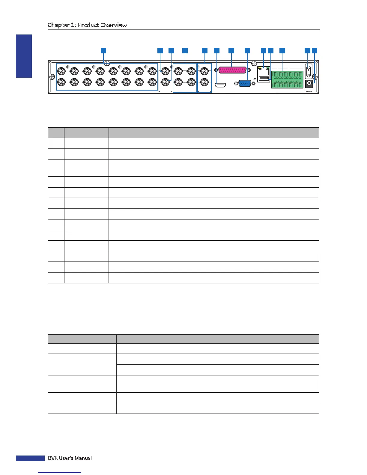 12 Power switch Press to turn the DVR on or o.