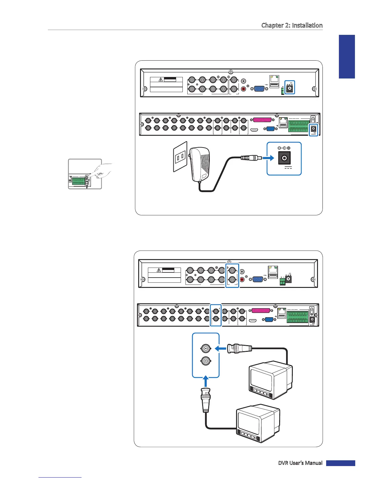 The preview screen can be displayed on monitors via BNC, VGA or HDMI (16-channel) connecon.