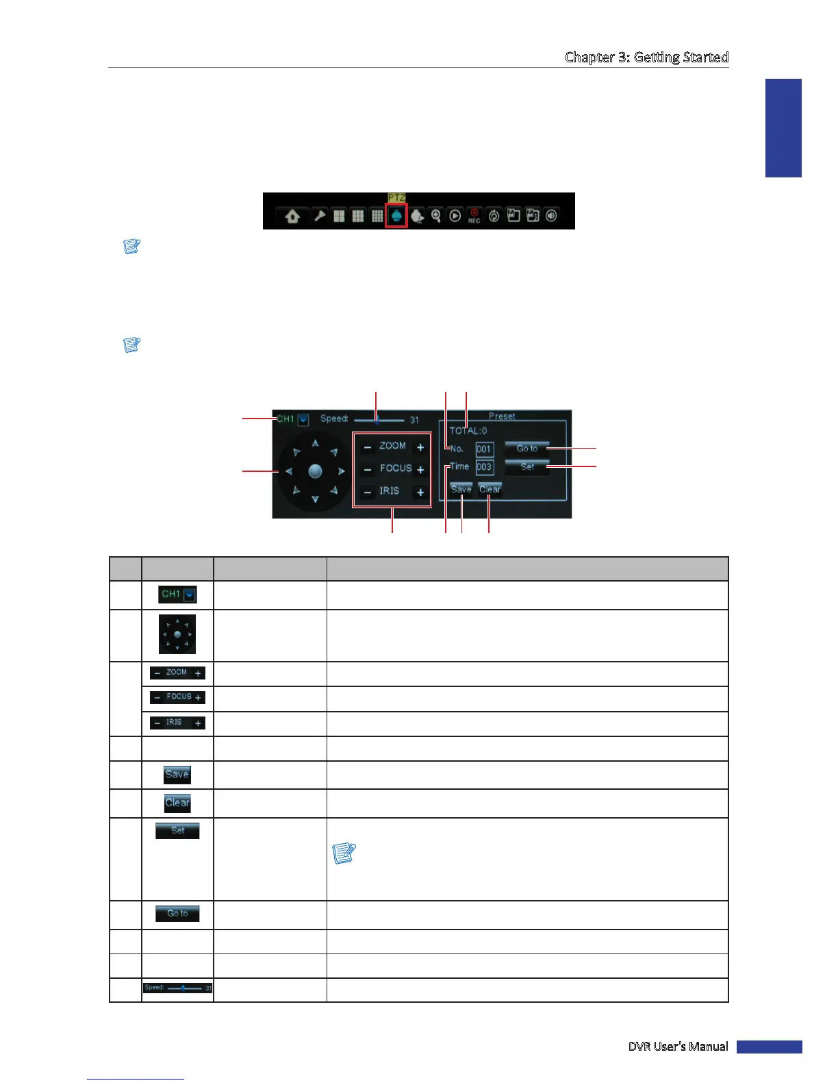 To change the PTZ sengs, see “4.6.2 PTZ Setup” on page 59.