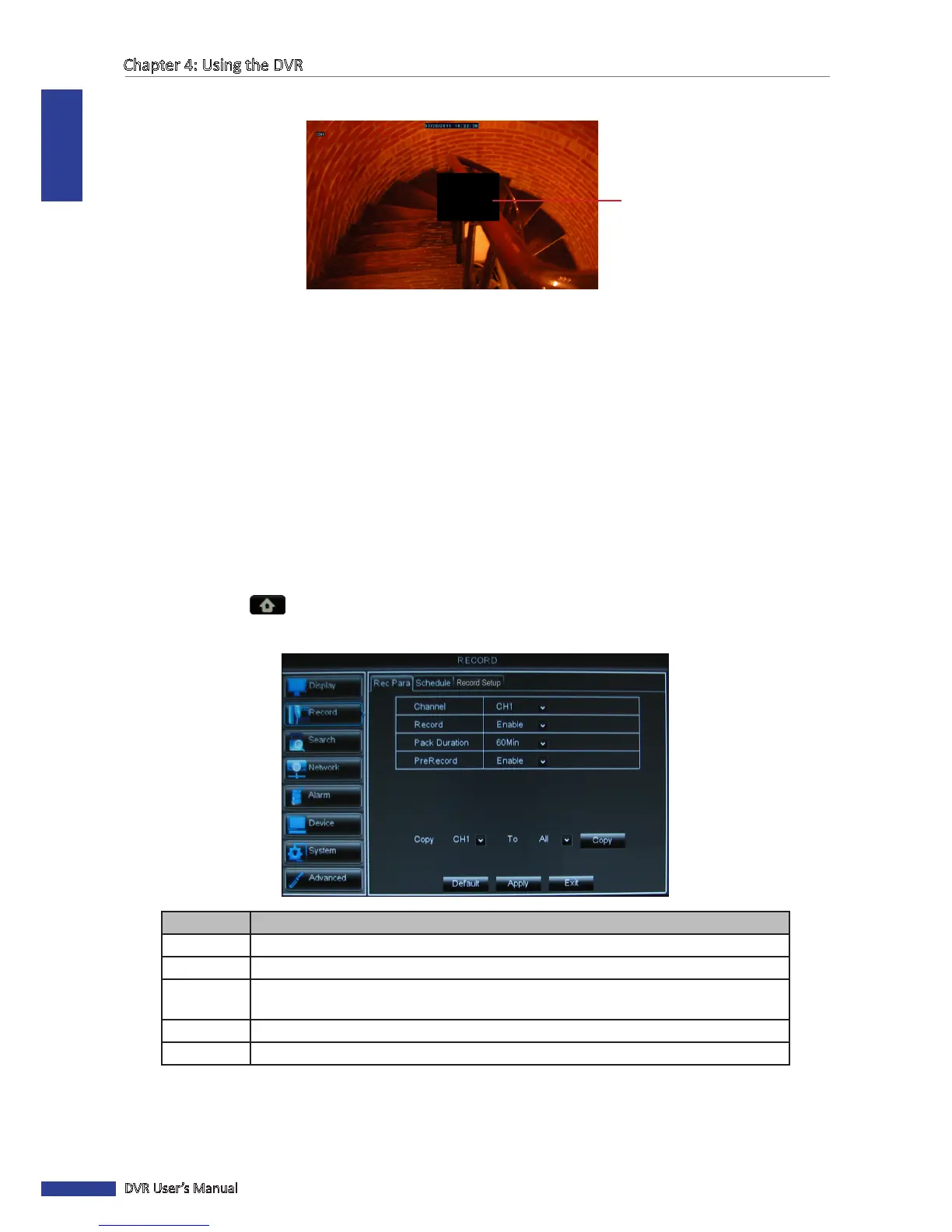 With RECORD menu, you can customize the recording sengs, set the recording schedule and framerate.
