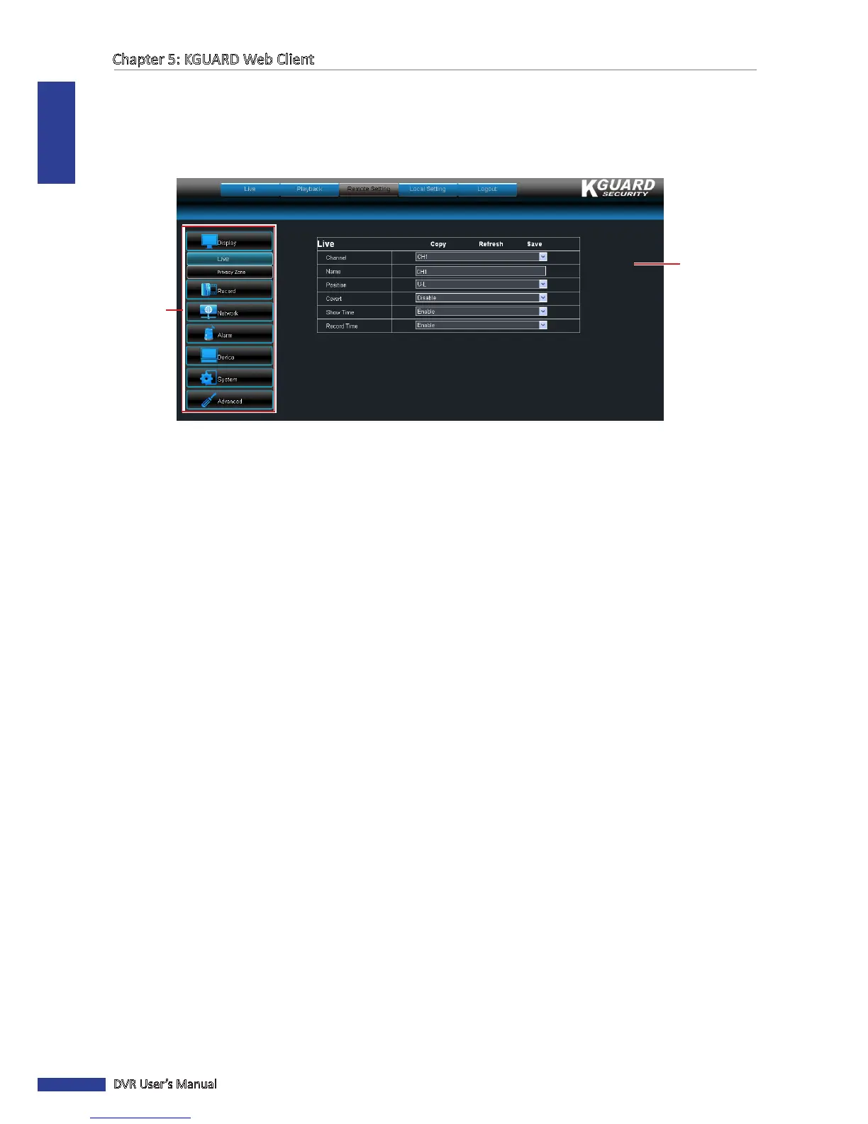 Use the Remote Seng menu to remotely congure the DVR. However, some funcons are only accessible if you login
