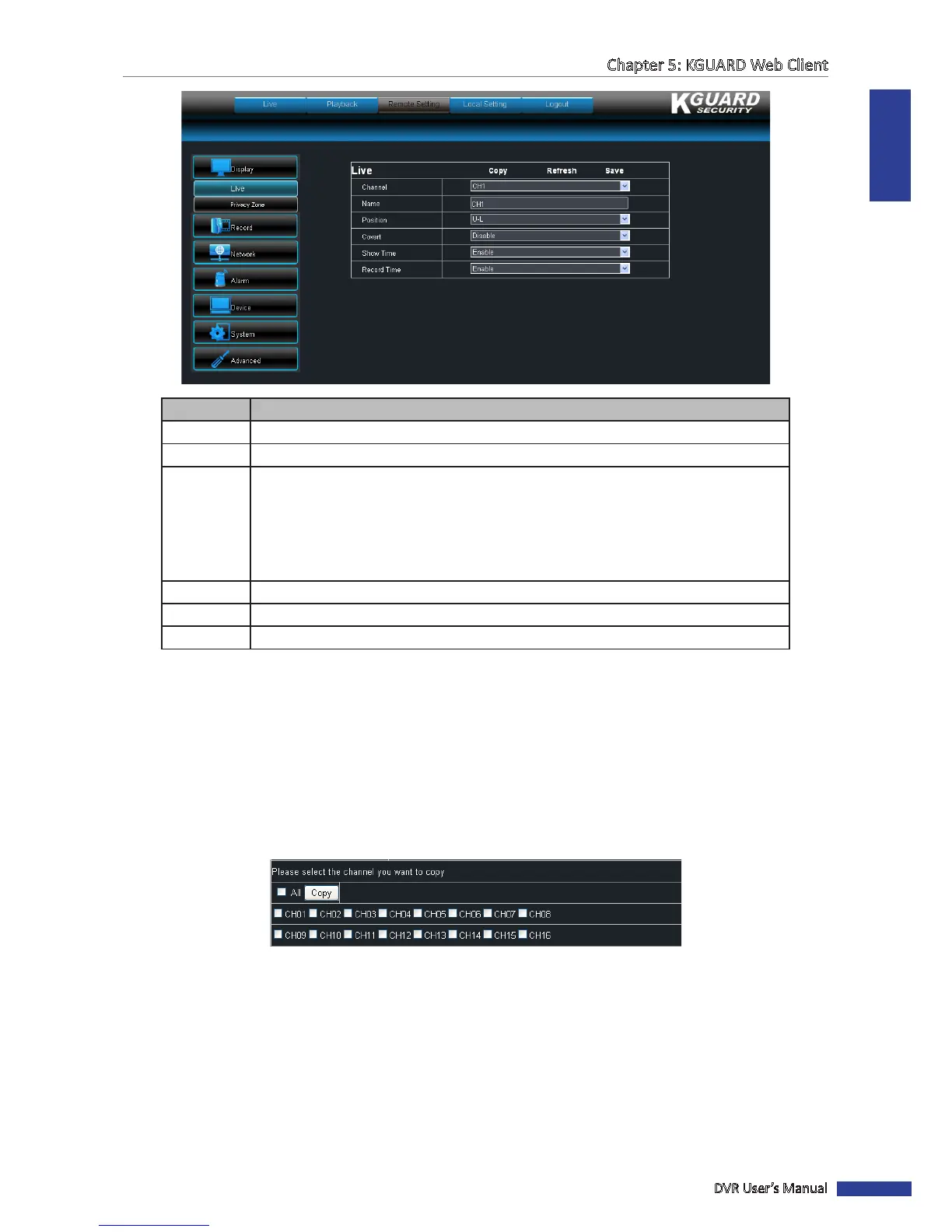• To apply the same sengs to other channels (except the channel name), click Copy. See “Copying Sengs To
