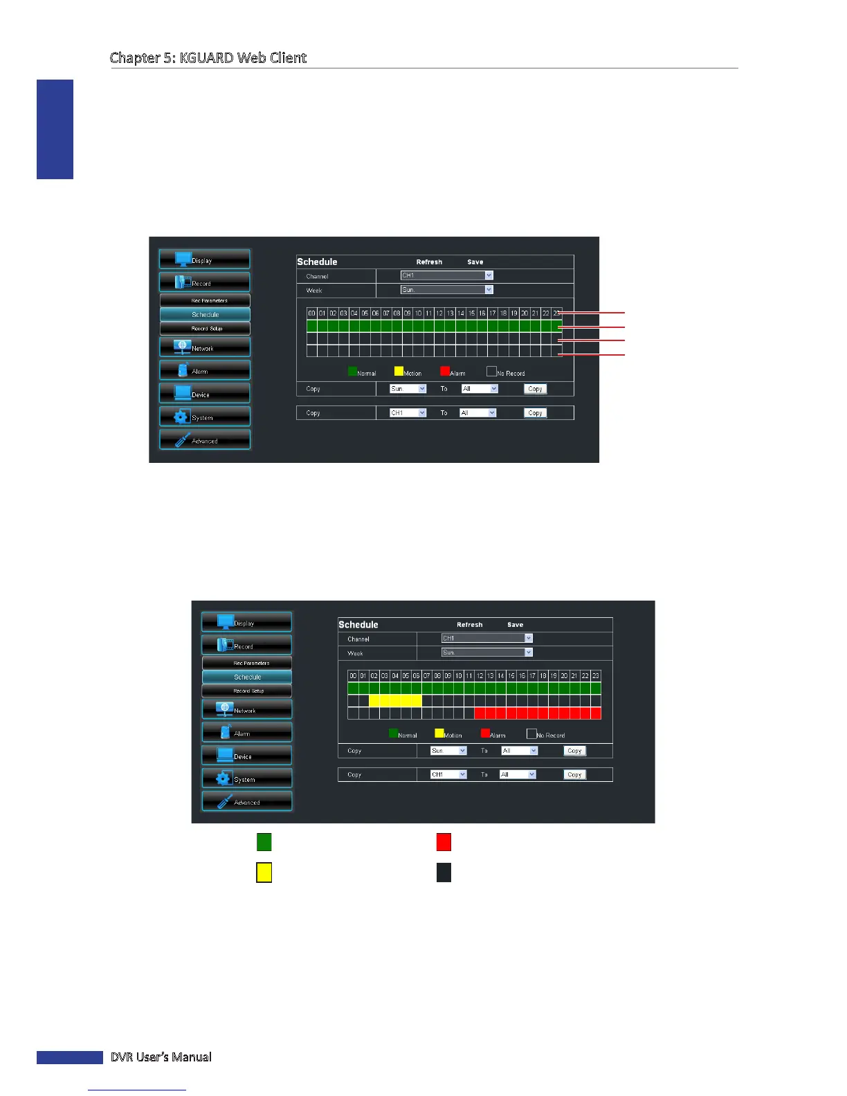 • To apply the same recording sengs to other channels, click Copy. See “Copying Sengs To Other Channels”