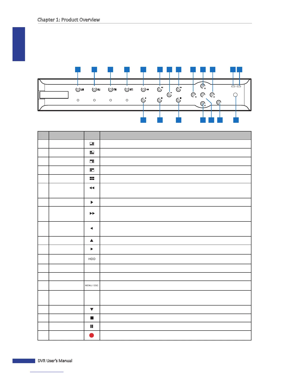 12 HDD Indicator Lights red when the HDD is being accessed.