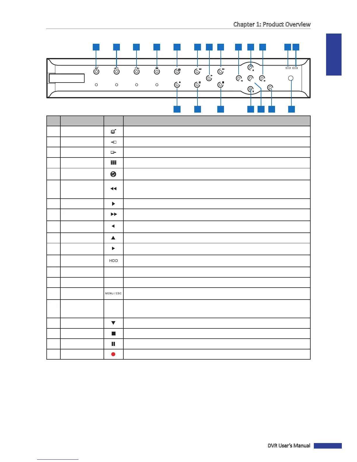 12 HDD Indicator Lights red when the HDD is being accessed.