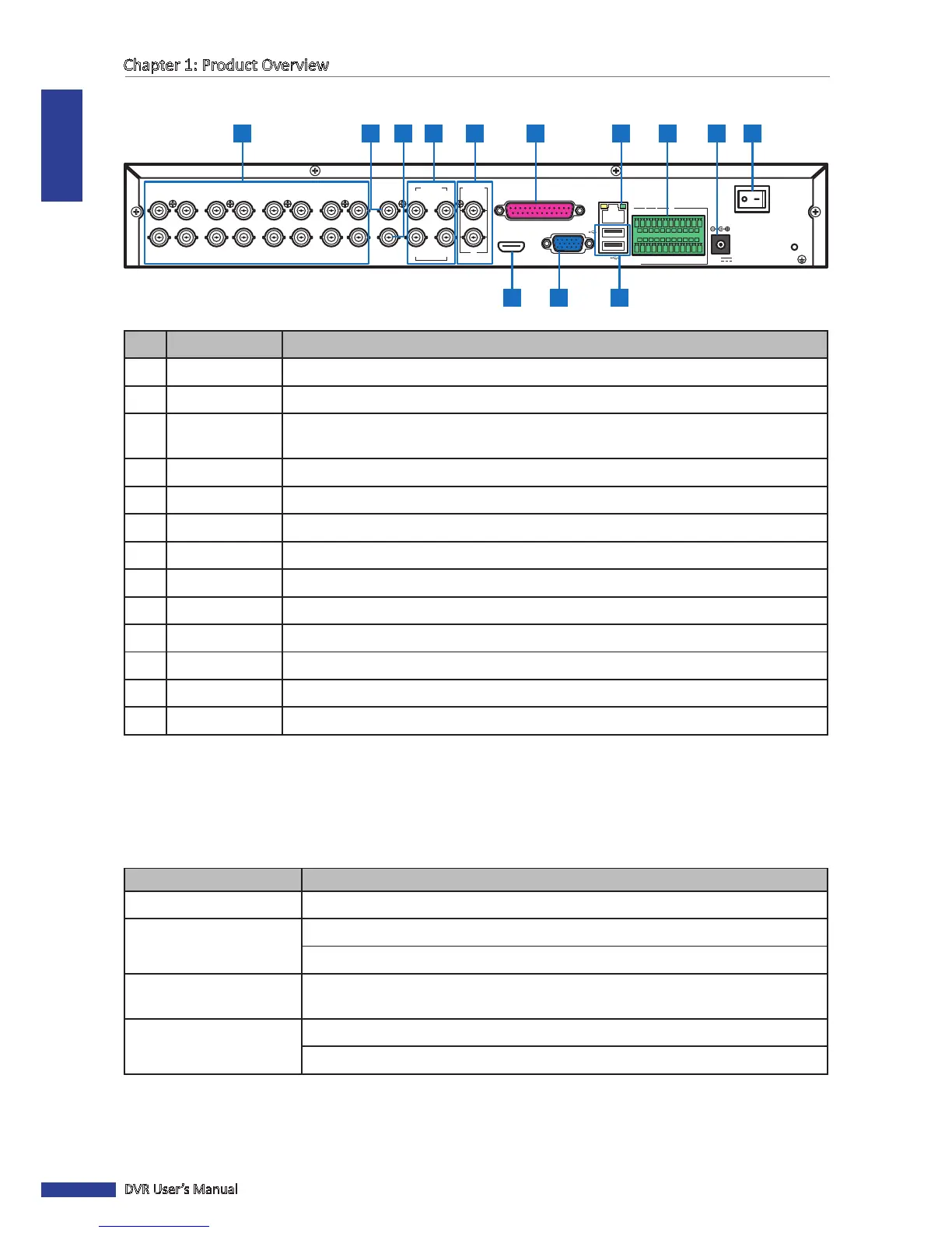 8 RS-485 Connects to a Speed dome camera, sensor or alarm device via RS-485.