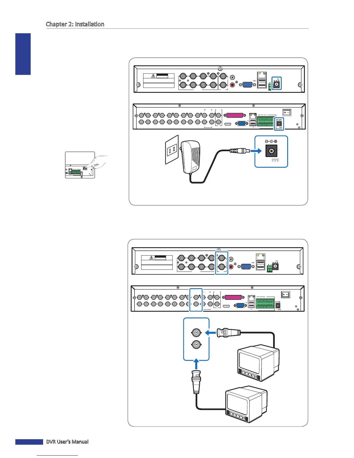 Use only the supplied power adapter that came with the DVR.