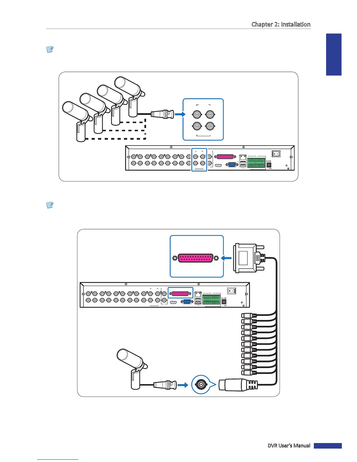 2 Connect the other end of the adapter to the parallel port on the back of the DVR.