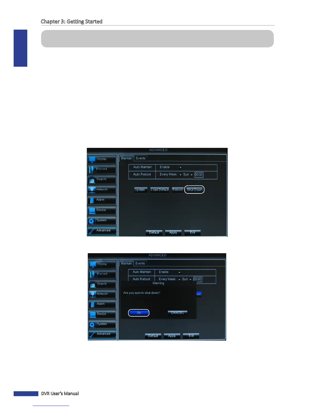 To properly turn o the DVR power, do the following: