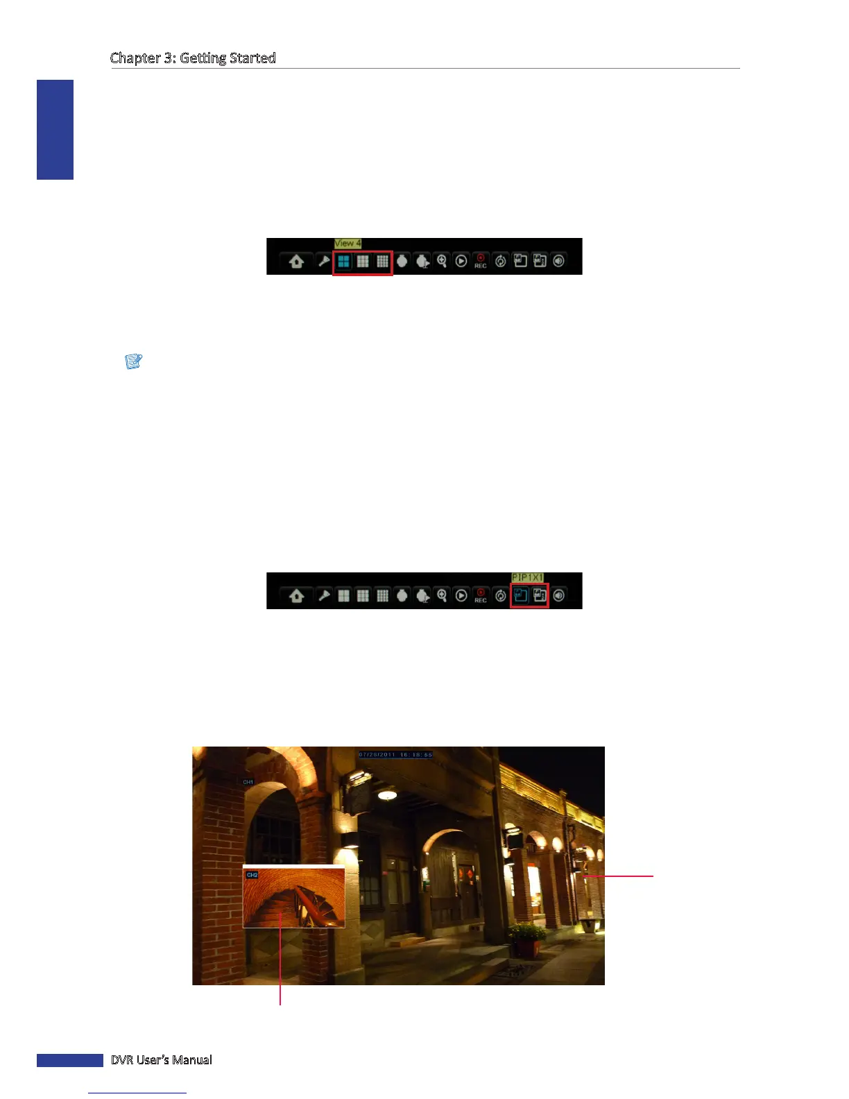• PIP1X1: Click this icon to view another channel that will appear a mini-window frame on top of the main channel