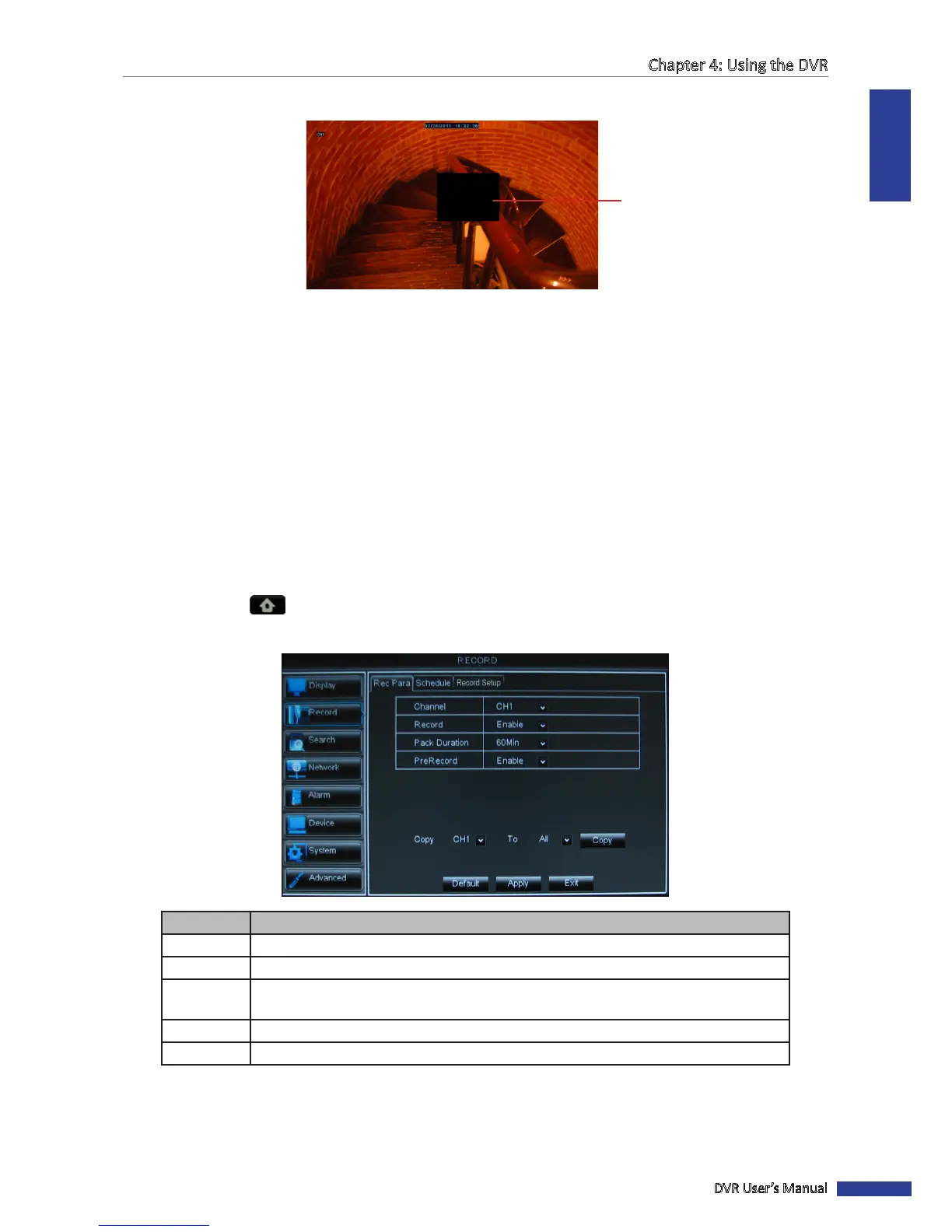 With RECORD menu, you can customize the recording sengs, set the recording schedule and framerate.