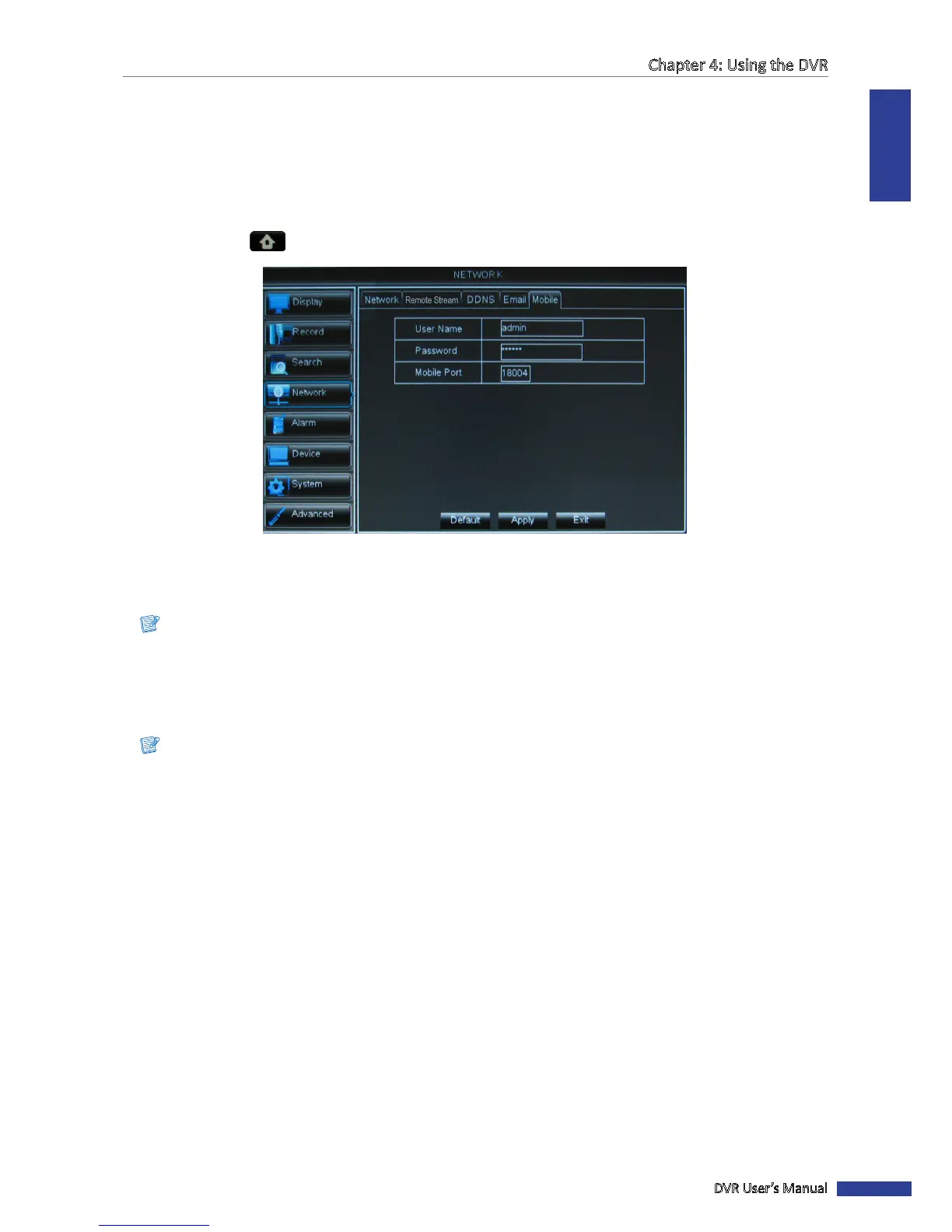 To remotely access the DVR via mobile devices, be sure that the DVR network connecon is properly congured before