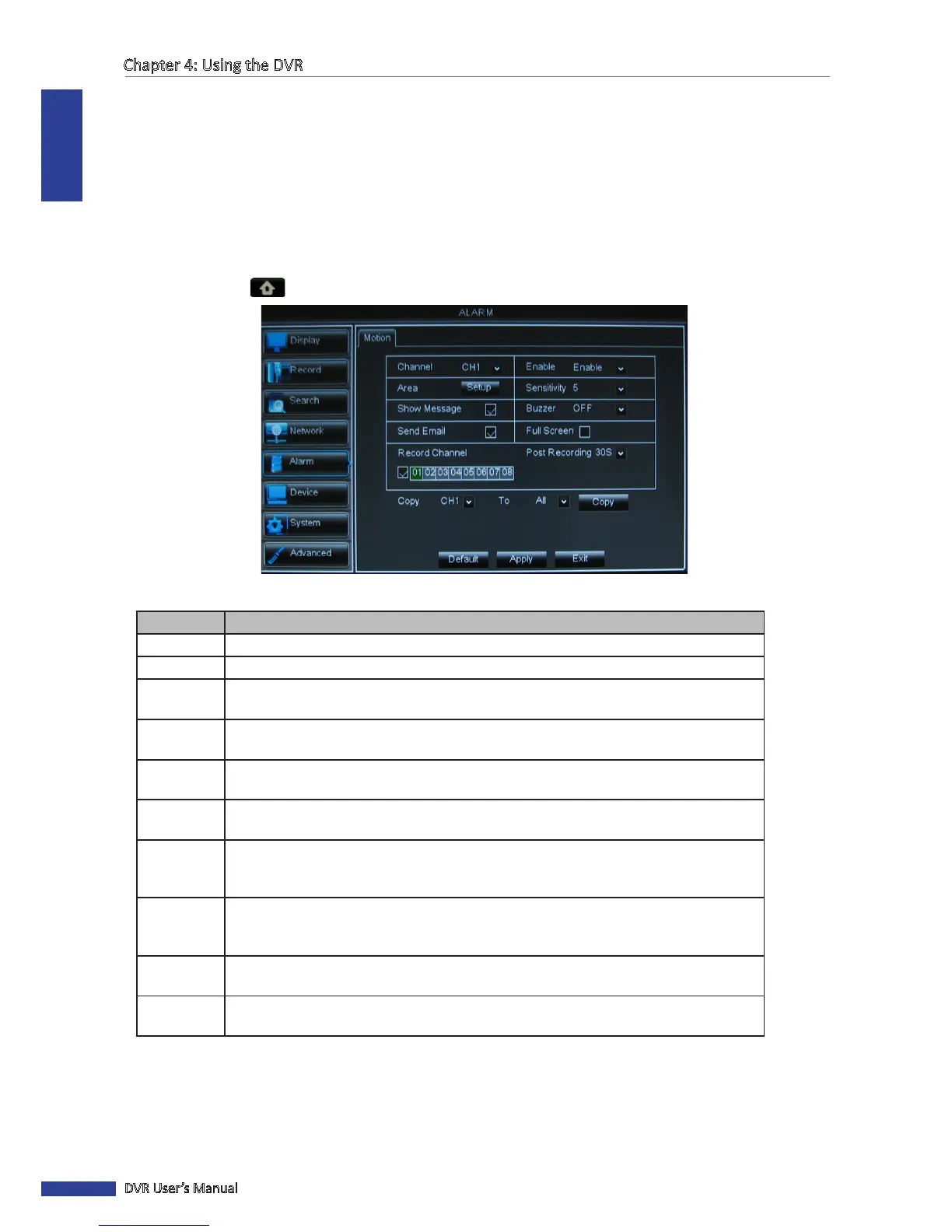 • To copy the current sengs to other channels, select the channel, then click Copy.