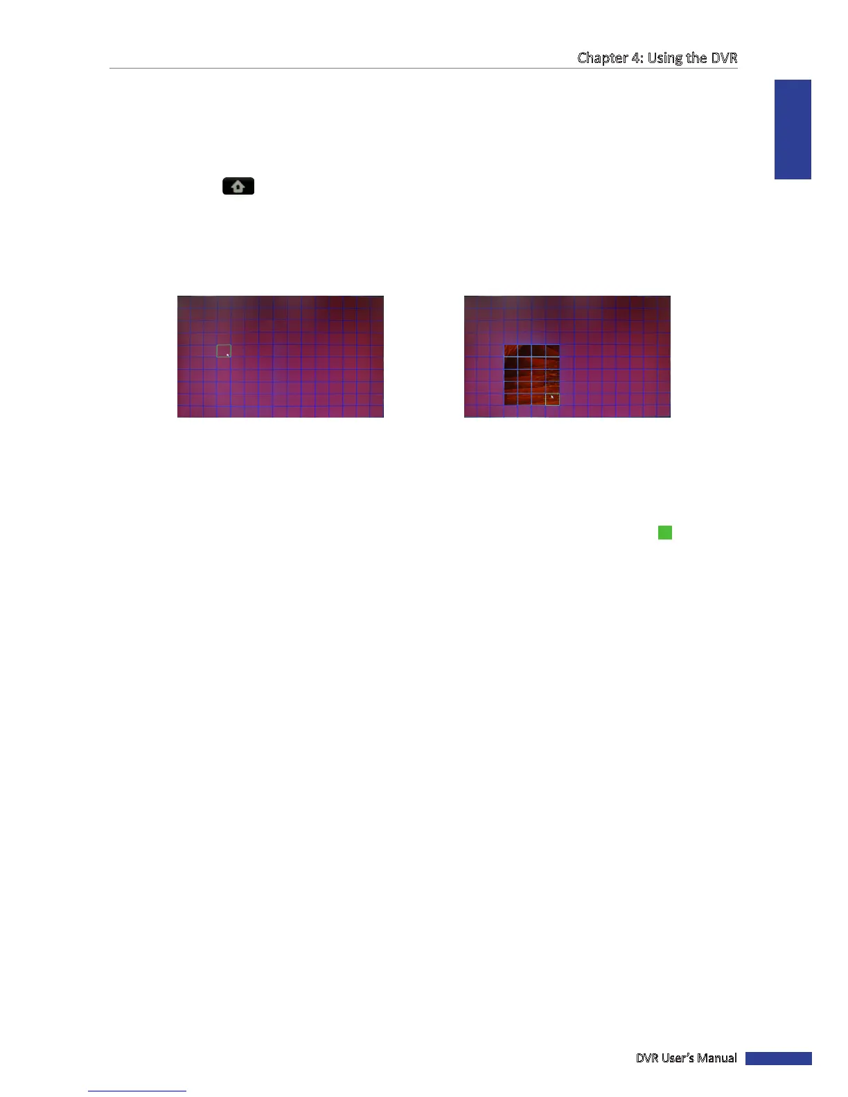 4 A grid screen with a green cursor appears. By default, the whole screen is marked for moon detecon (red block).