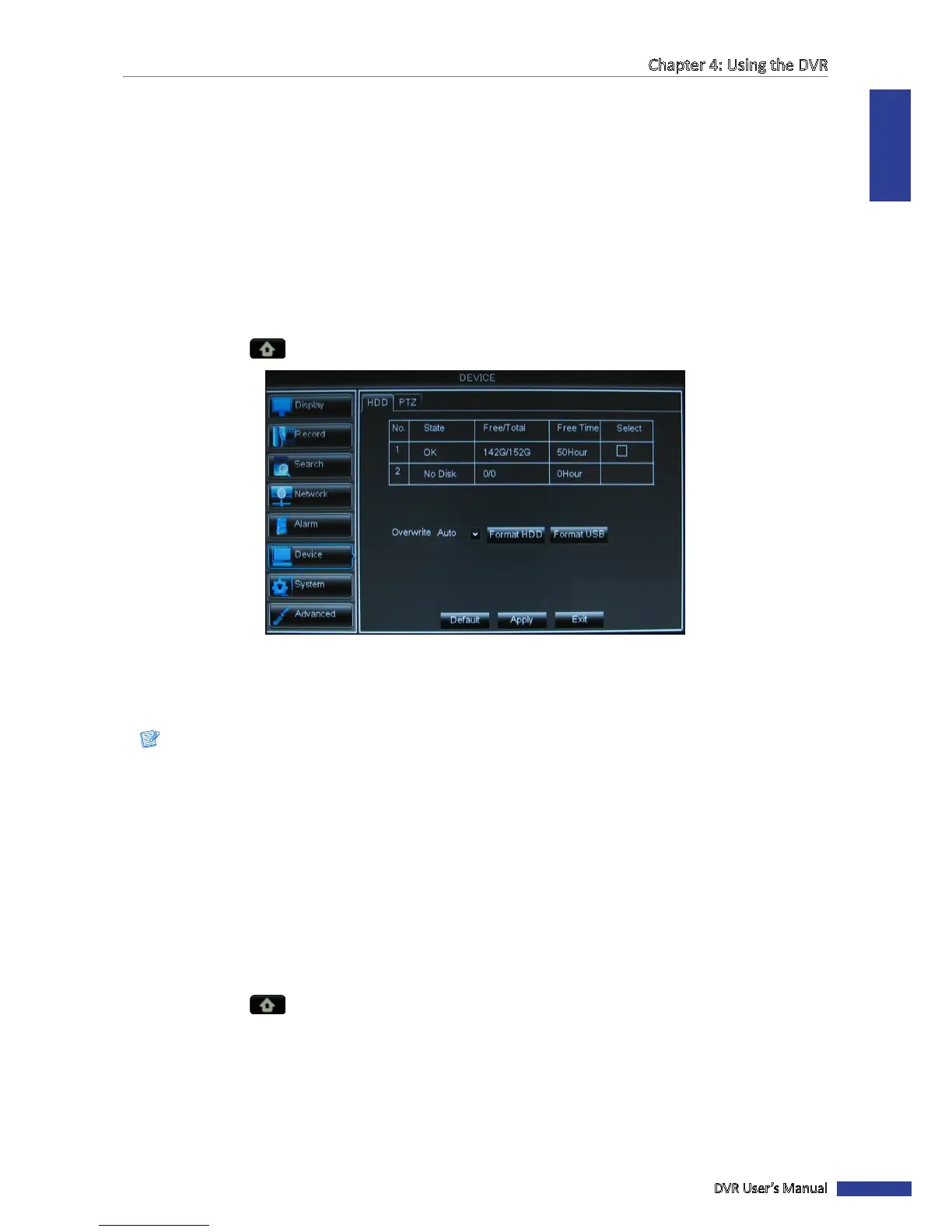 Aer a new hard disk drive is properly installed in the DVR, the system automacally detects the HDD and prompts for