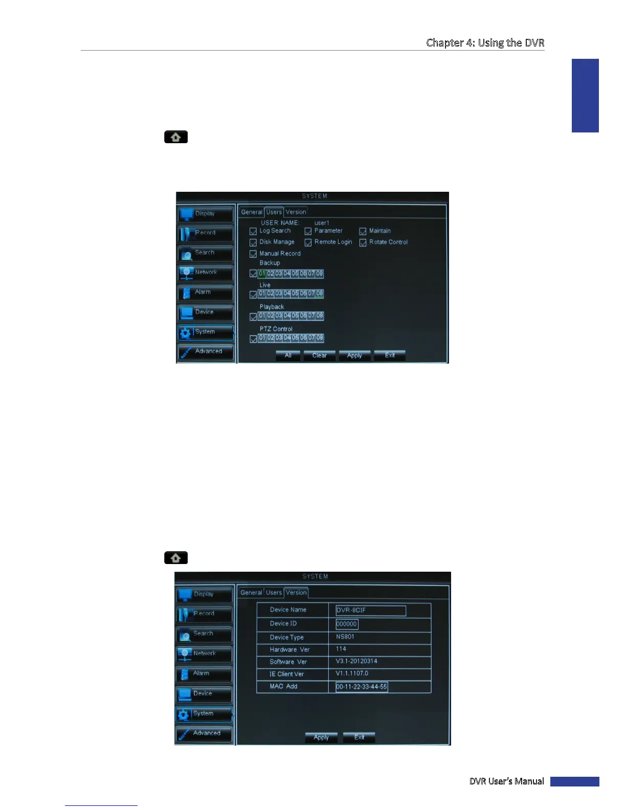 2 Select Main Menu > SYSTEM, select the Users tab.