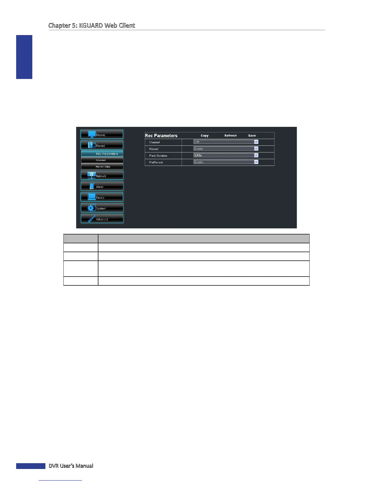 Use the Record menu to remotely set the recording schedule and customize the recording sengs, such as frame rate,