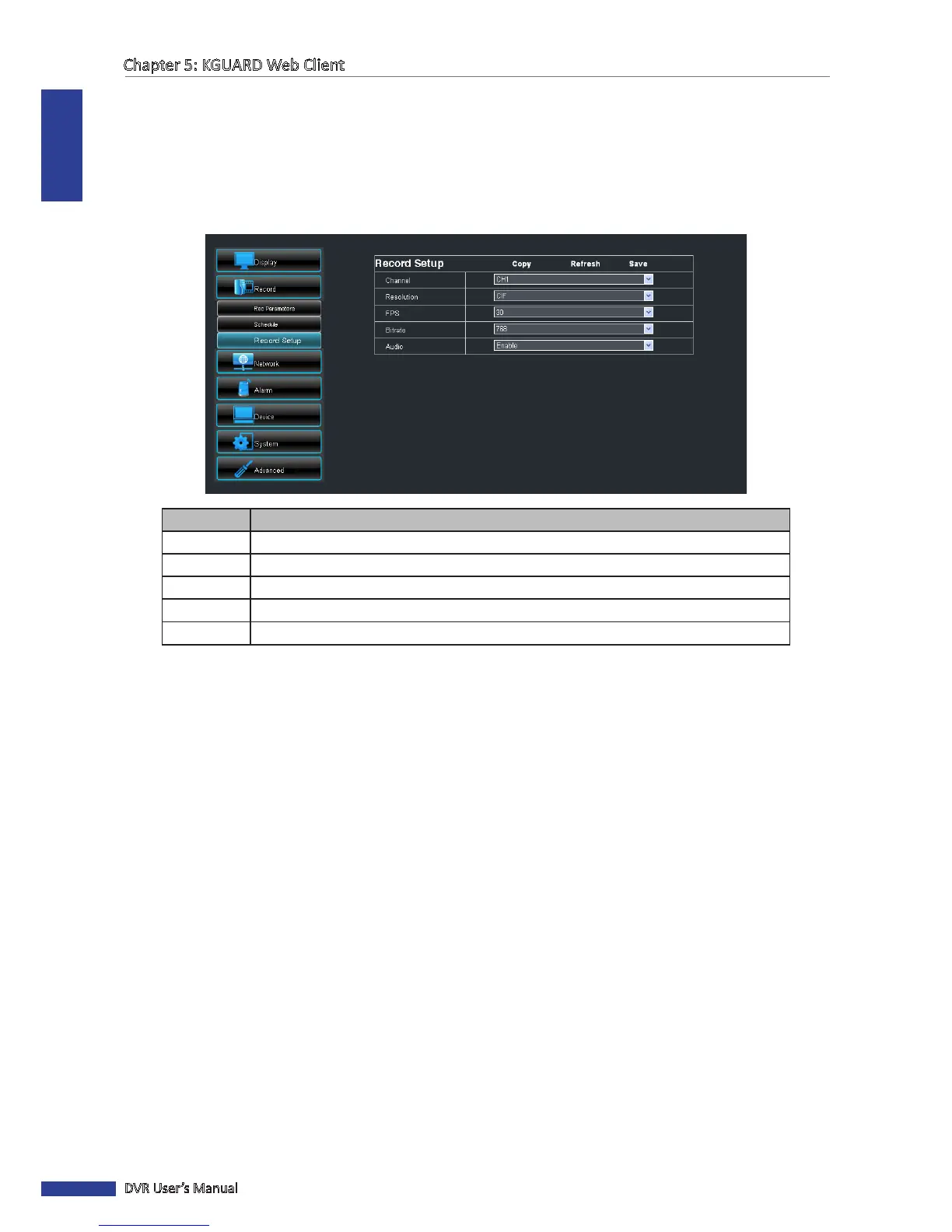 • To apply the same recording sengs to other channels, click Copy. See “Copying Sengs To Other Channels”