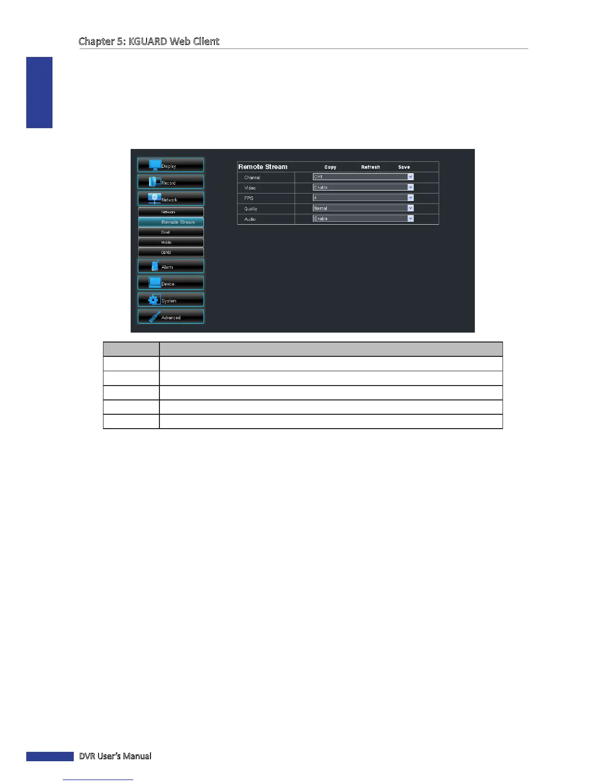 2 On the le panel, click Network > Remote Stream. The Remote Stream screen appears.