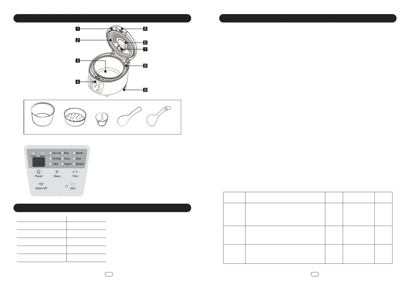 • Please take out all parts, such as ceramic coating inner pot, steam outlet, detachable inner lid to