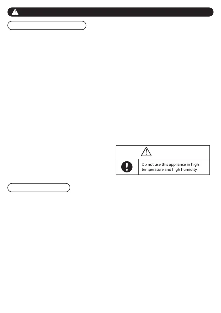 6. Do not use the appliance outdoors or near windows. Rain drops may cause electrical hazards.