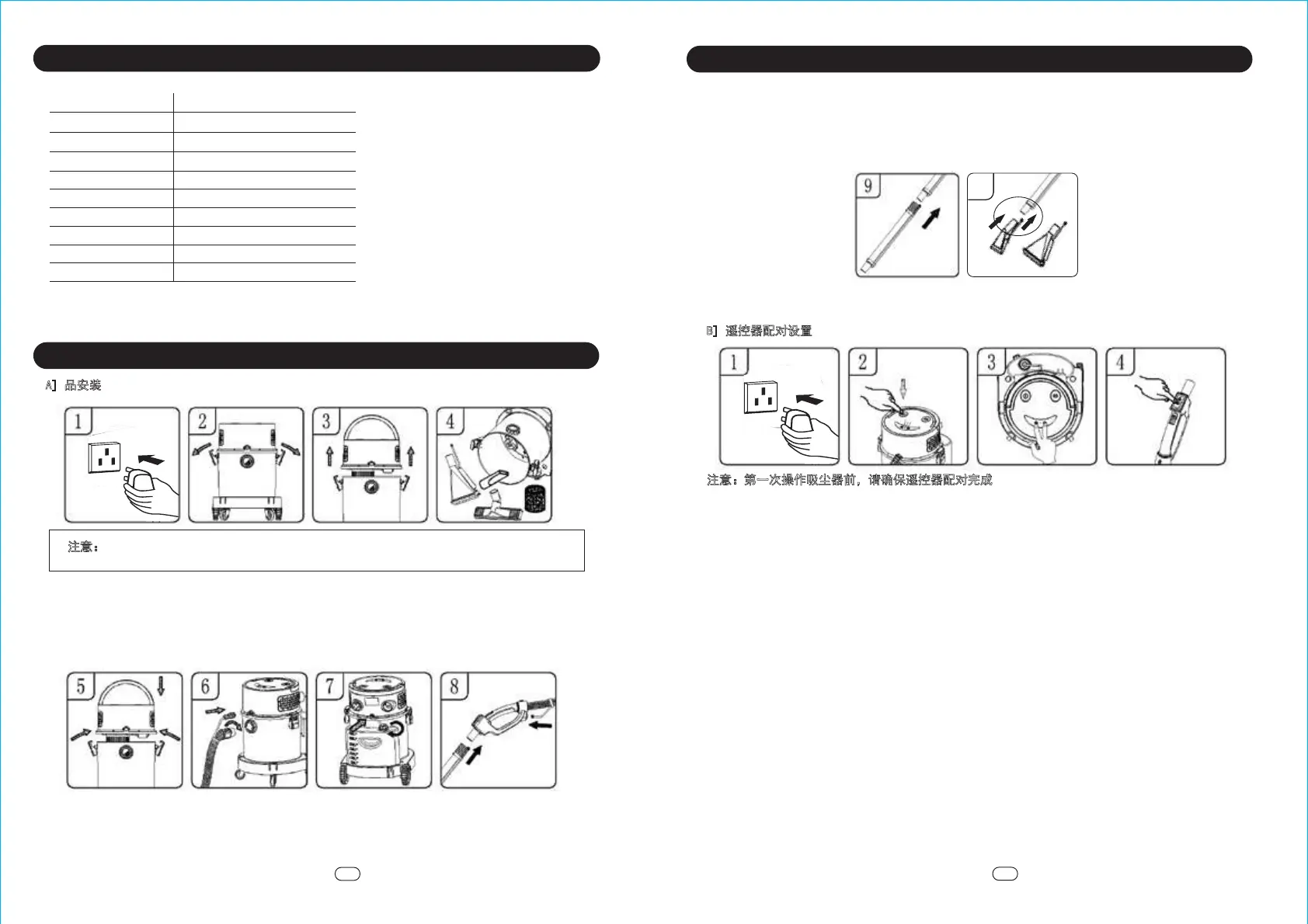 注意:当您打开或组装您购买的真空吸尘器时,请确保电源线插头和插座已断电。