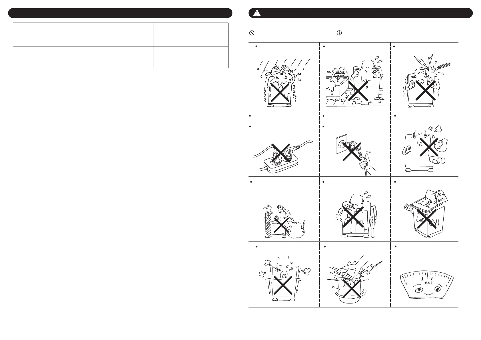 请勿将洗衣机放在潮湿的地方。 请勿将水直接洒在电器周围的