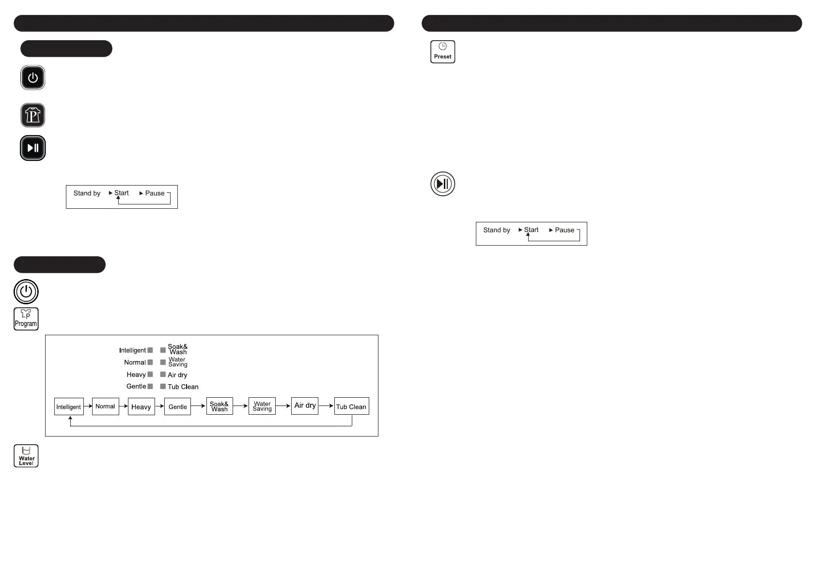 • 当机器处于预设模式时,无法按下开始/暂停按钮。