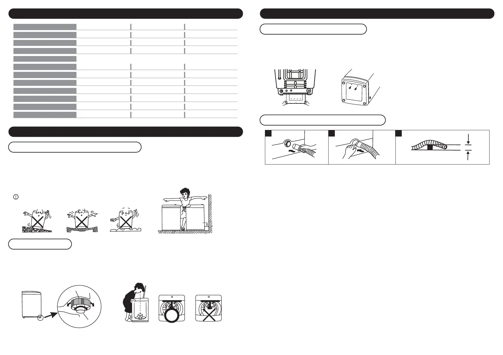 Tinggi hos saluran pembuangan harus lebih rendah dari 6cm, supaya mesin basuh berputar dengan betul.
