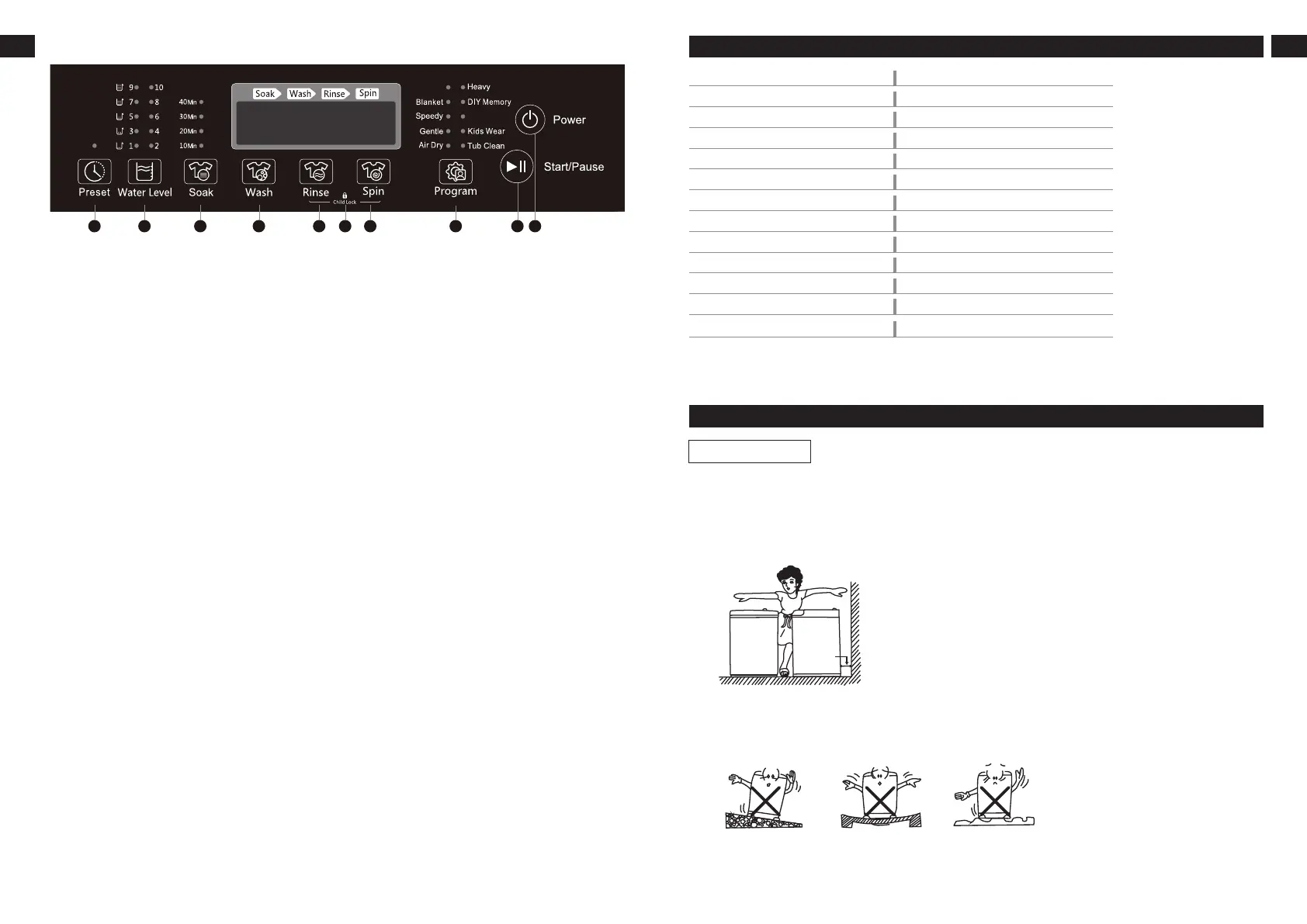 3. Jangan letakkan mesin basuh di atas permukaan yang lantai dan tidak rata; jangan letak