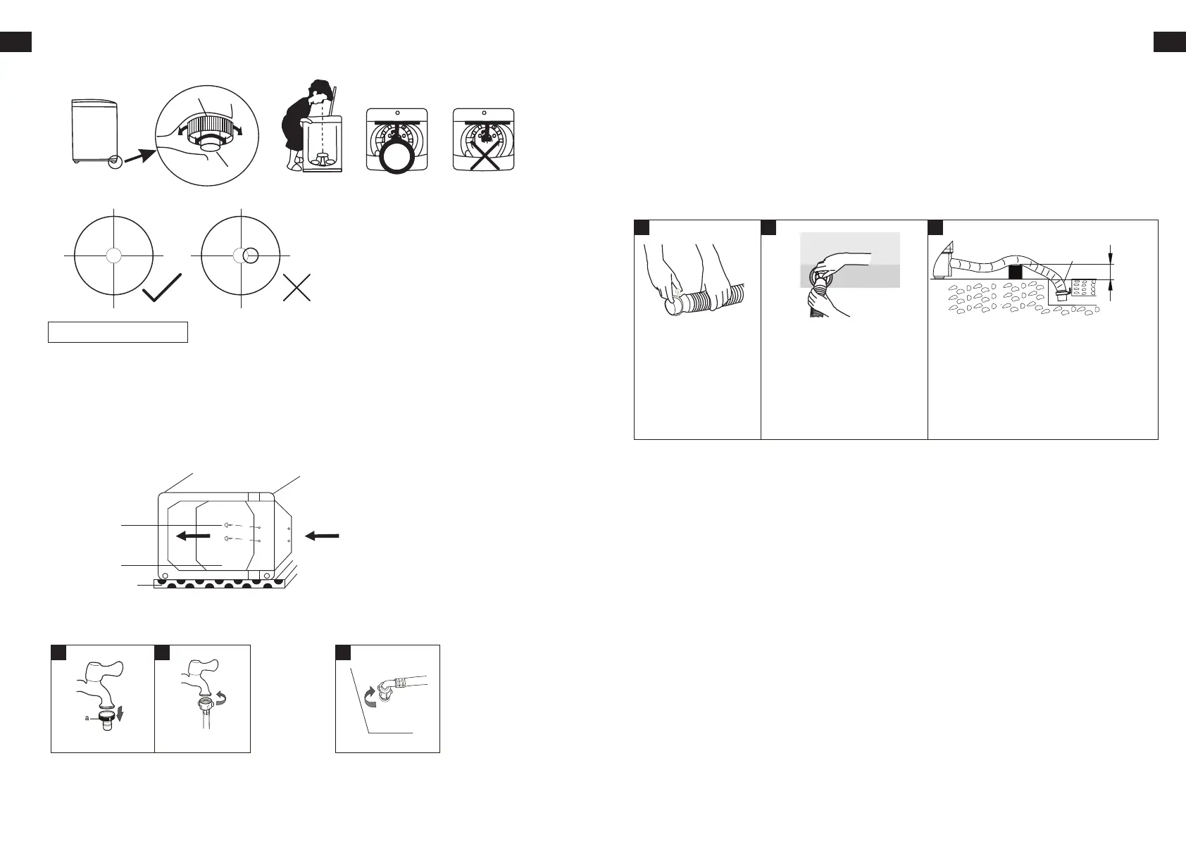 4. Mesin basuh hendaklah diletakkan selancar mungkin. Jika perlu, laraskan 6 kaki sokongan