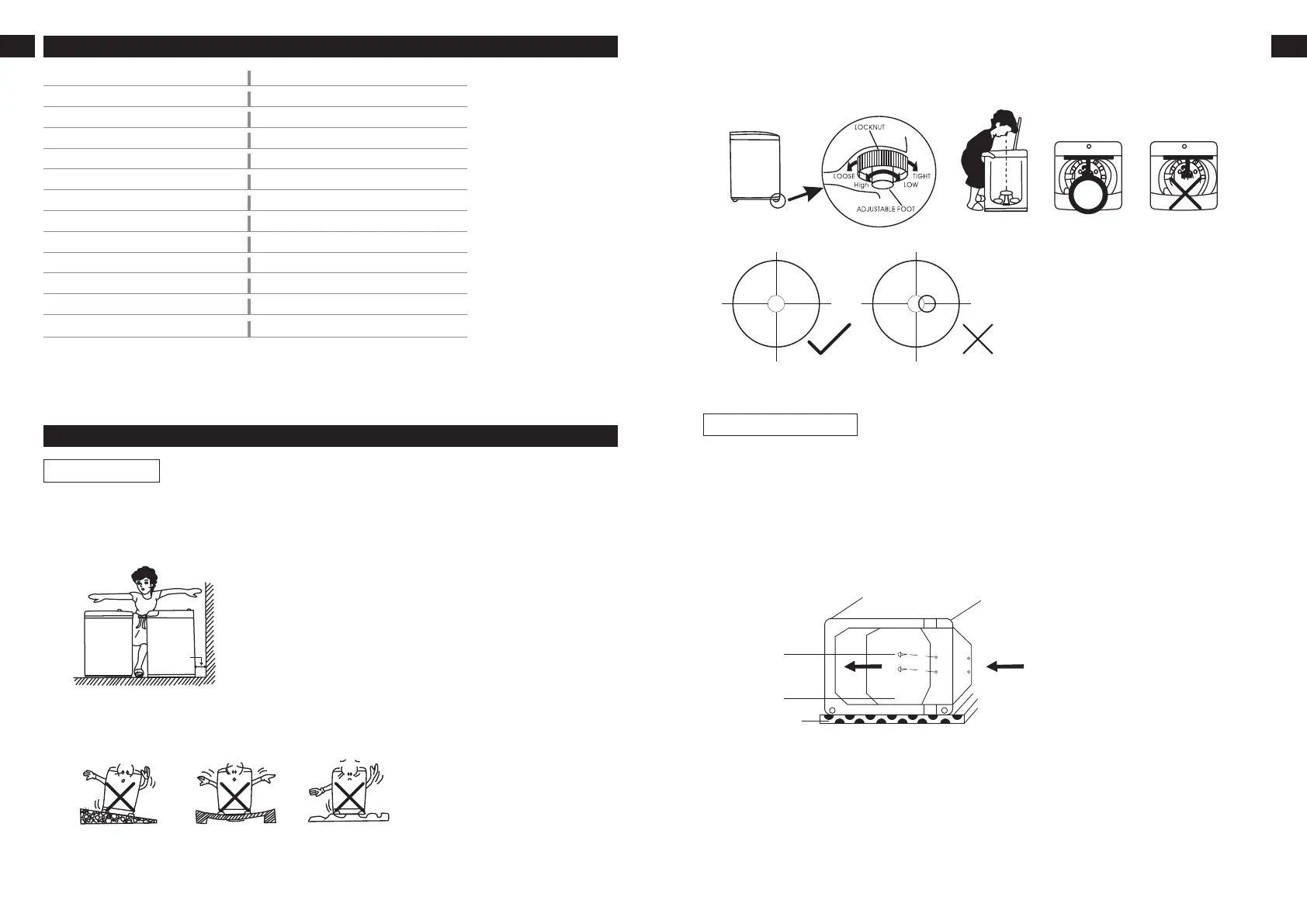 3. Do not place the washing machine on a sloping, uneven surface; do not place the