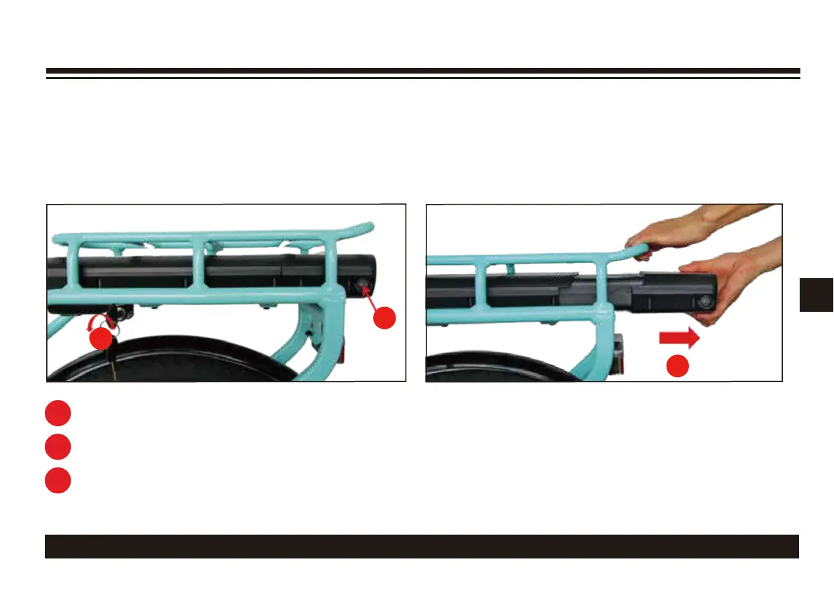 battery, pull the battery backwards away from the bicycle to remove the battery.