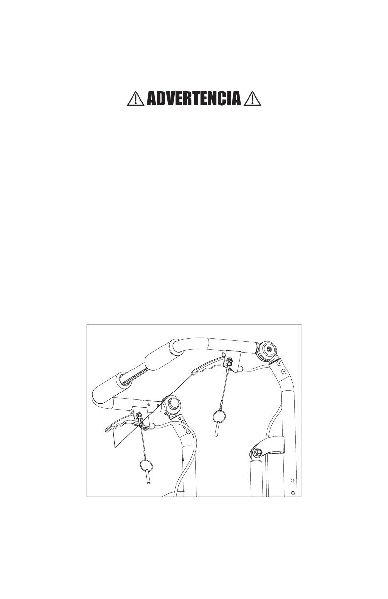 ADVERTENCIA: No use la silla de ruedas si la vara del espaldar no está en posición de