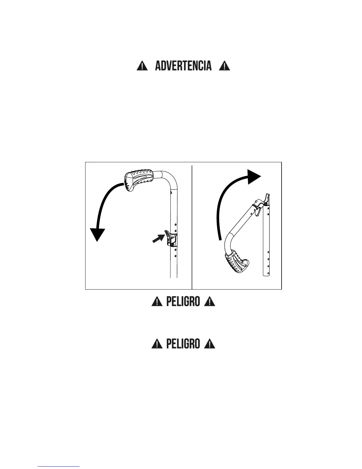 PELIGRO: No coloque o cuelgue objetos de los caños del espaldar. El hacer esto podría