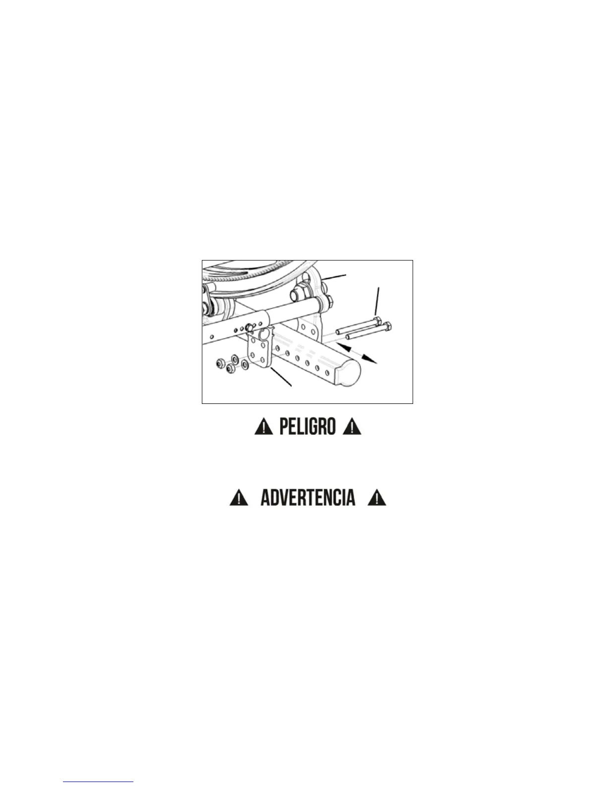 PELIGRO: Ajustar la manga del eje demasiado hacia adelante puede causar que la silla se