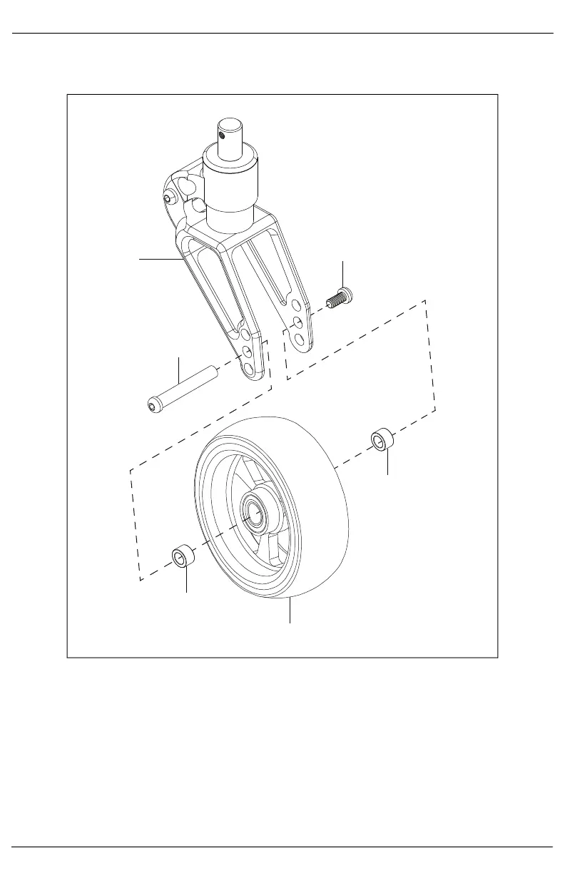 1. Install Frog Leg Ultra Sport Fork (A) onto caster wheel (E) with axle (B), screw (C) and two spacers (D)