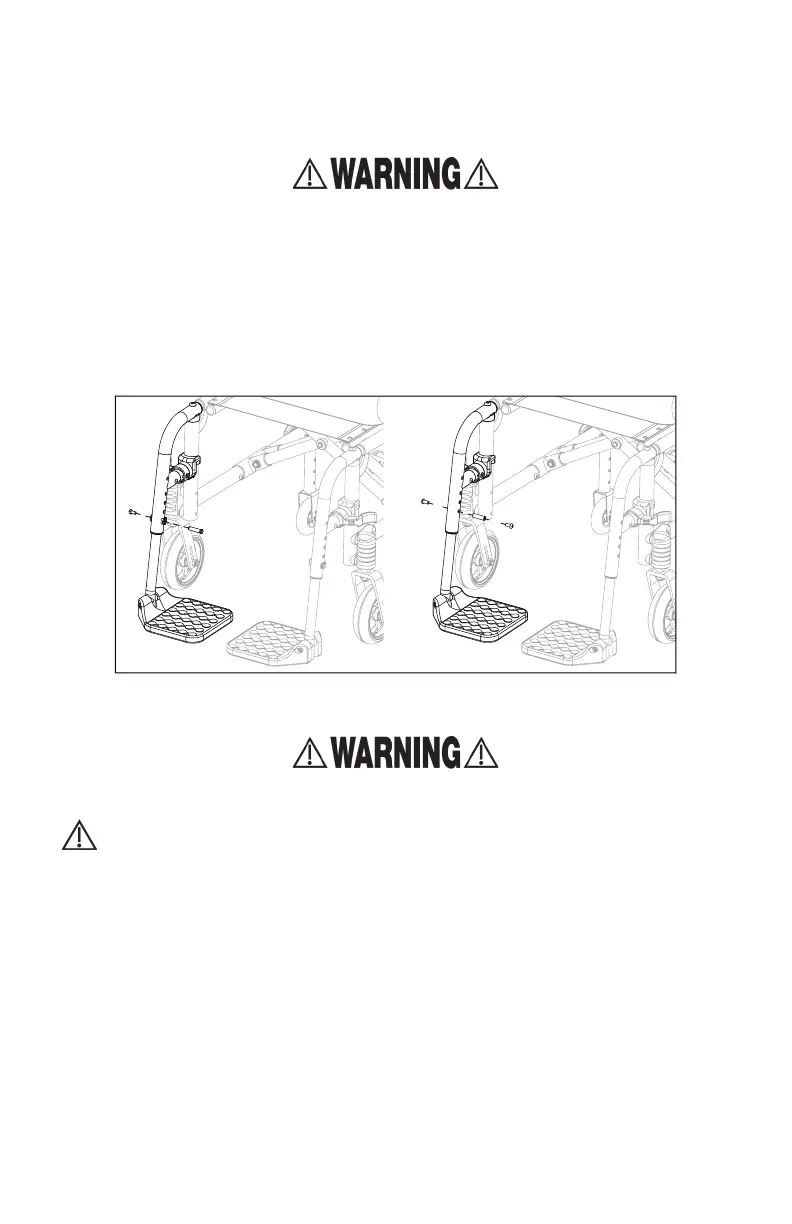 WARNING: Ensure hangers are locked in place before using wheelchair. Unlocked