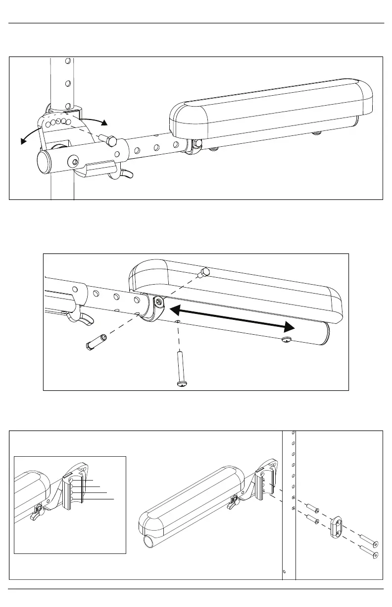 2. Set the length of the armrest. To adjust the length, remove the bolts and spacer on the tube and the