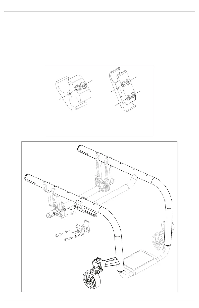 1. The wheel lock assemblies with the wheel lock bars are mounted onto the chair using the wheel lock
