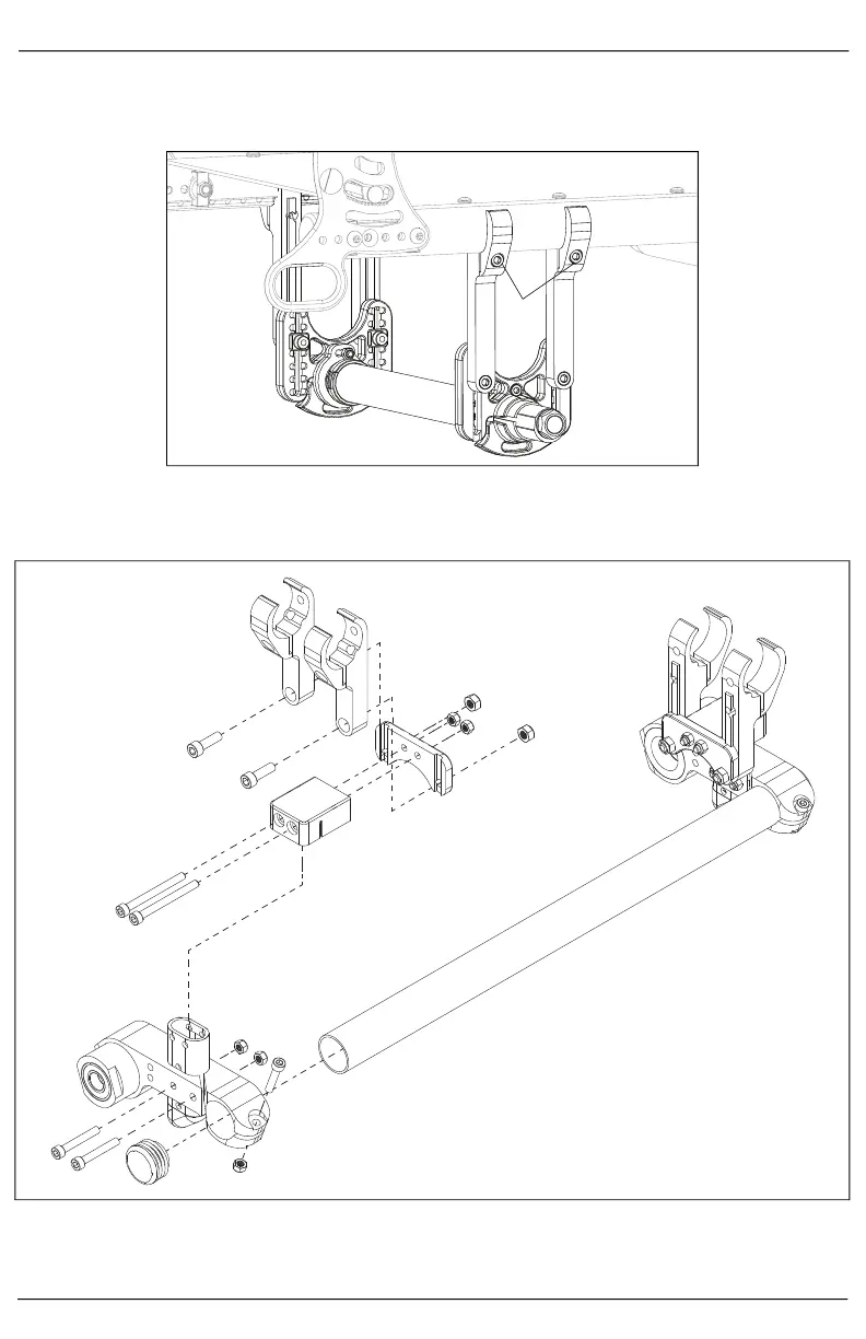 2. Assemble the camber mount tubes to the towers with the brackets and hardware shown below. Ensure