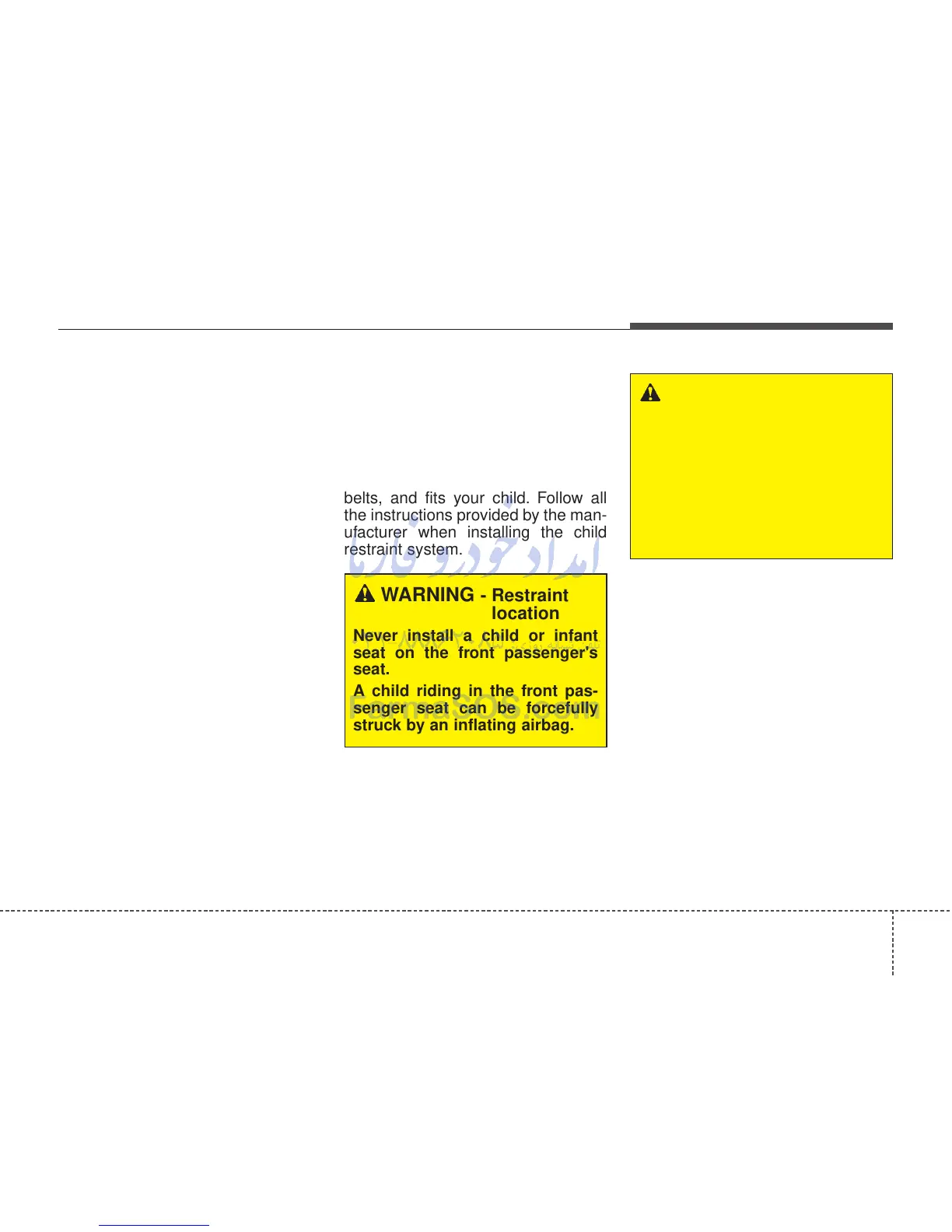 Never install a child or infant