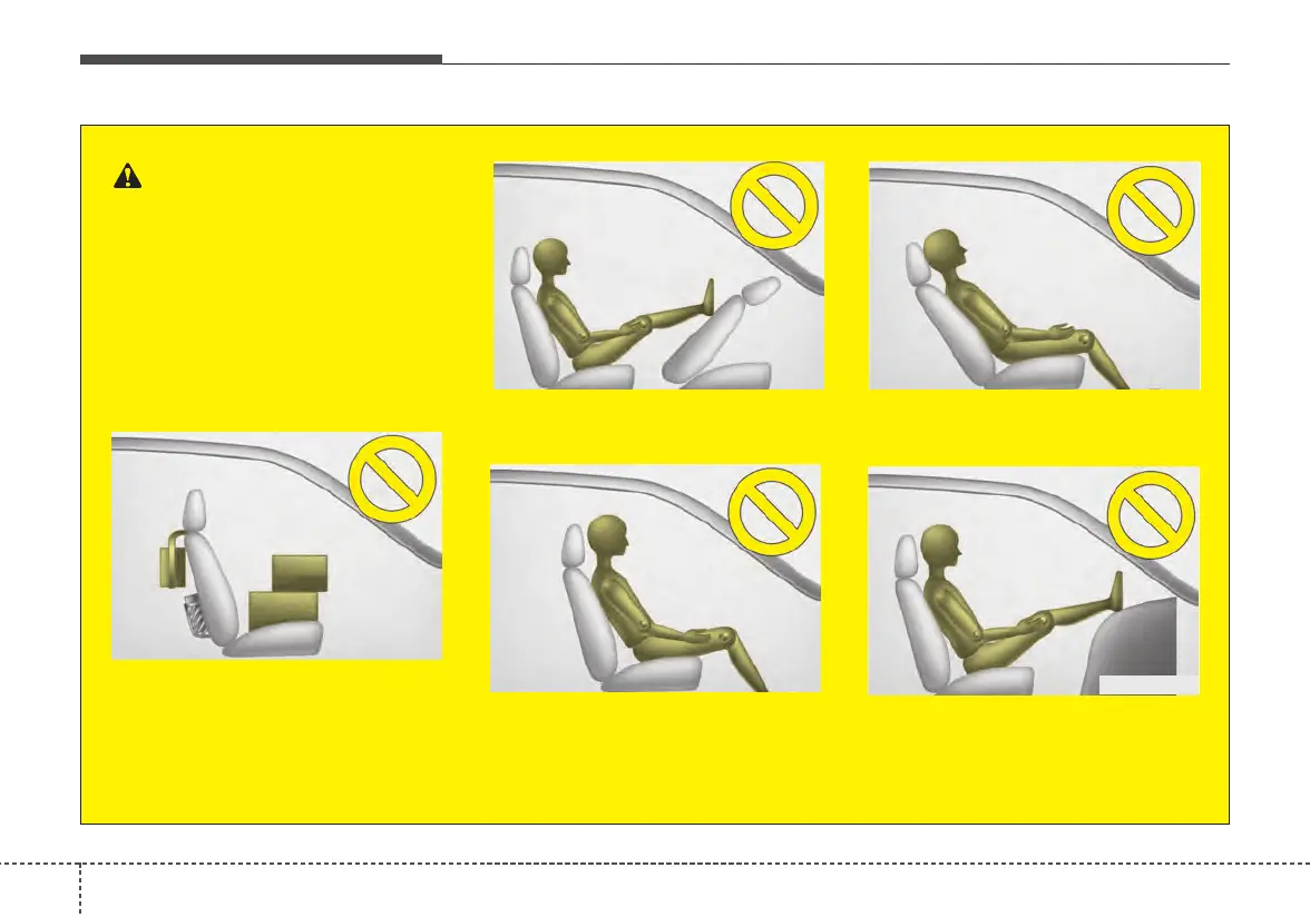 - Never place feet on the dash-