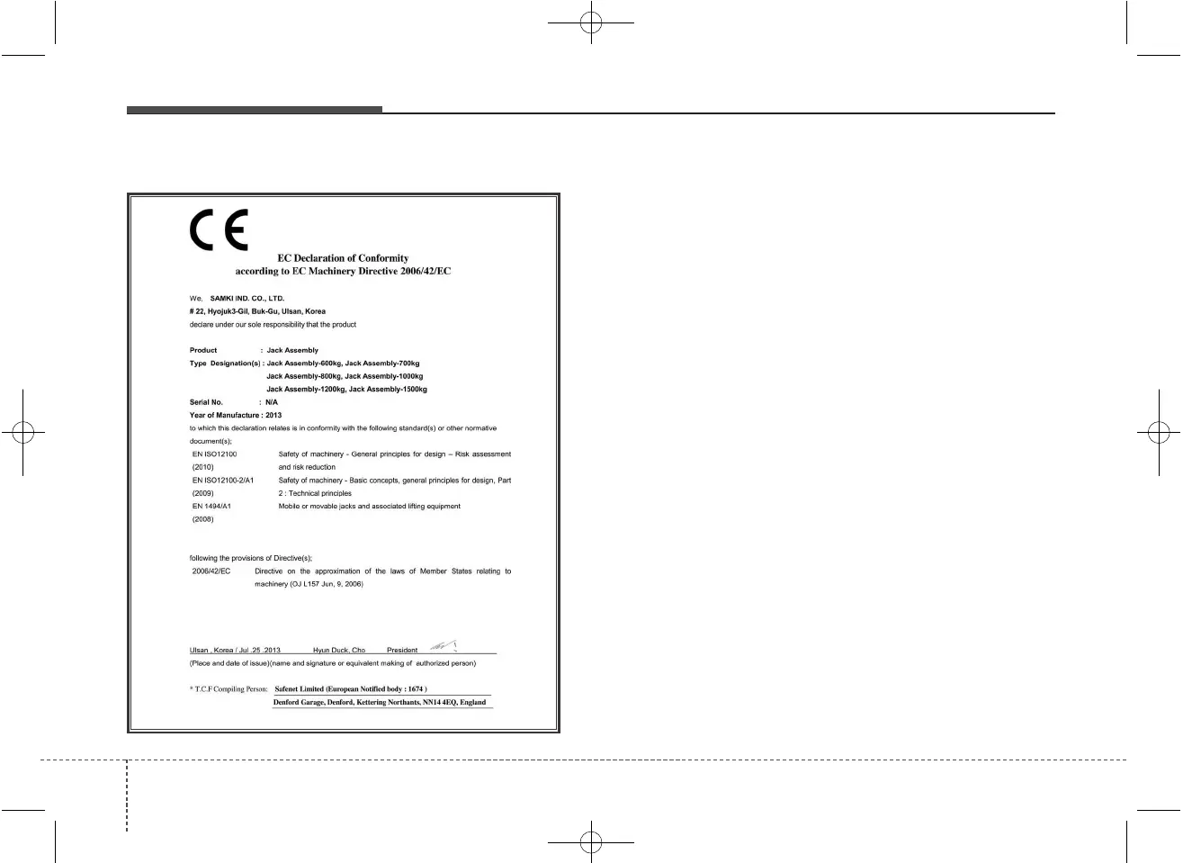 EC Declaration of Conformity for Jack