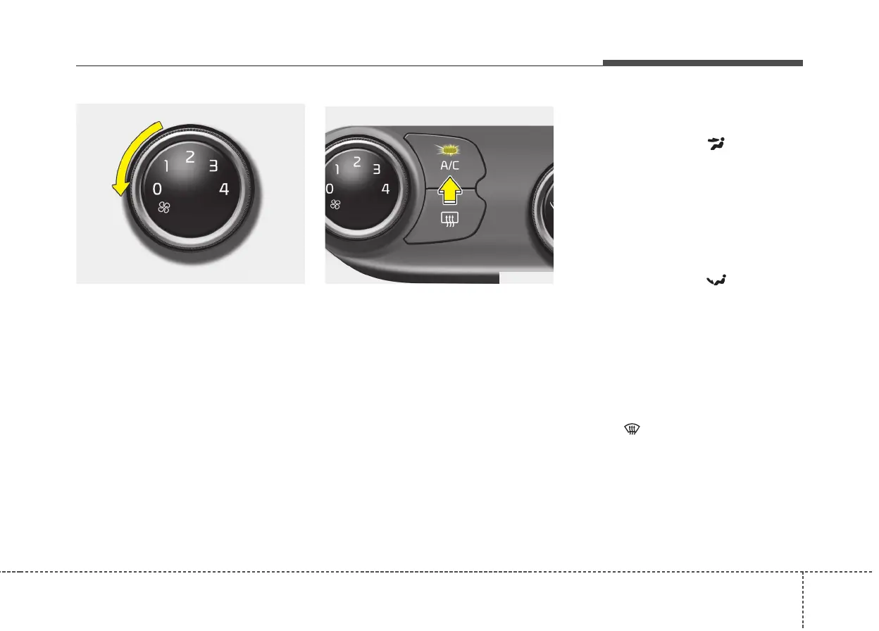 • If the windshield fogs up, set the mode